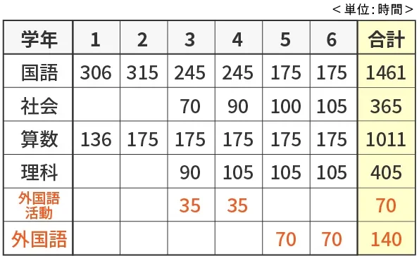 そうでありながらも、標準時数は5・6年生でも年間70回(週2回程度)と限られています。覚えなければならないことは多いのに、その割には授業時間数が足りていないのです。