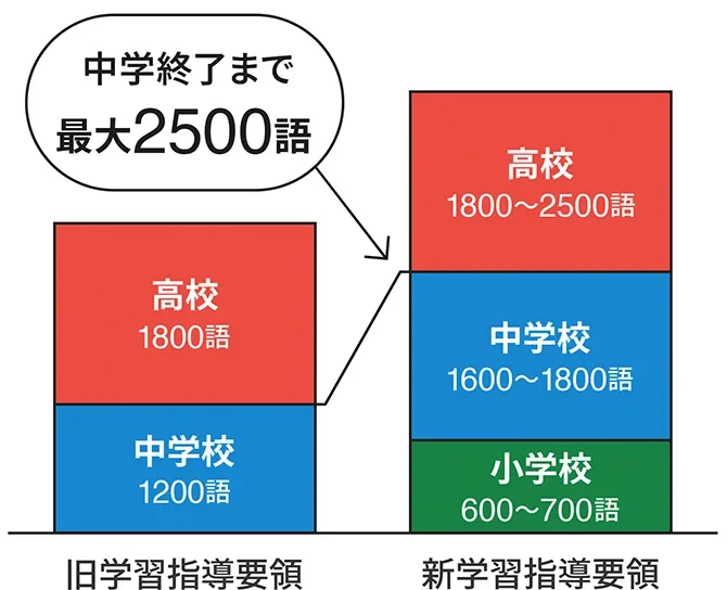 【2020年度学習指導要領改訂に伴う必要単語数の変化】