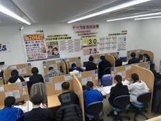 Axis上杉校では「自分の意志と行動次第で、どんな目標も必ず達成できる!」というスローガンのもと、日々多くの生徒が授業や自習に励んでいます。