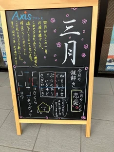3月イーゼルを掲載します。 またクイズ形式となっていますので、楽しく解いてみてください。 それにしてもスギ花粉が凄い舞っていますね。 私は、毎朝起きたと同時にクシャミ5連発です。 飲み薬は毎年飲んでいません。 4月下旬まで辛抱します。