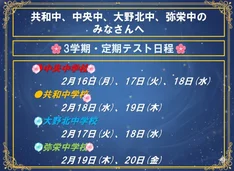 相模原市立中学校(中央中・大野北中・共和中・弥栄中)の1・2年生のみなさん、いよいよ3学期の期末テストが近づいてきました。
