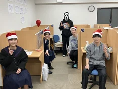今日は2学期の終業式でした。巷には浮かれる要素は多々ありながら、周囲には気を取られず受験準備に取り組む姿勢には頭が下がります。ほんの気持ちではありますが、シュークリームをプレゼント。すぐに頬張る子、大事に持ち帰る子、、それぞれです。ついつい調子に乗って、みんなで記念写真!?を撮りました。高校3年の白石和磨くんは被り物に挑戦。上下黒のコーディネートが妙にぴったりでした(笑)