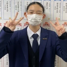 私は、アクシスに入る前から桃山高校に行きたいと思っていました。しかし「桃山高校に行くような人は成績がオール5近く取っている」と聞いて、自分には無理だと思い、自信を失くしていました。アクシスの校責任者の先生と初めて面談したときに志望校を聞かれたときも、自信がなく、あまり言いたくありませんでしたが、言ってみると「成績的に桃山高校を目指すスタートラインには立てている」と言ってくださりました。アクシスで正しい情報を教えてもらえたので、自分でも桃山高校を目指せることが分かり嬉しかったです。それ以降も塾長や他の先生方は何度も相談に乗ってくださり、入試の直前には応援の寄せ書きを贈ってくださって、精神的にも支えられました。