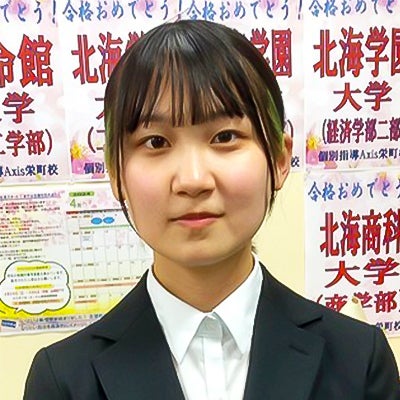 アクシスの先生方はいつも私を気にかけてくださり、相談もしやすかったです。とても居心地が良かったので、高3の夏はよく休みの日に早い時間から自習室に通っていました。自習の休憩時間に話しかけてくださったり、公募推薦入試で出願基準について疑問を感じたことを先生に話すと、その場で大学にわざわざ電話して確認してくださったりといつも優しく対応していただいたことが印象に残っています。受験直前では面接の受け答えに悩んでいた時に私に合った答えを考えてきてくださったり、入試のために東京へ行く前日に小論のテーマに関する用語をまとめたものを自宅まで送ってくださったりして、本当に有り難いと感じました。合格発表の時は想像以上に喜んでくださった事も忘れられません。このように本当に暖かい環境だったため、安心して受験期を過ごすこともできました。心から感謝しています。約4年間お世話になりました!