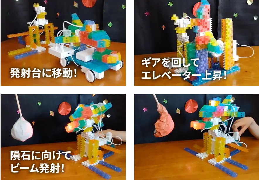 自分の思い描く作品に近づけるために、プログラミングを作りかえたり、ブロックの形をかえたりと、試行錯誤を繰り返していました。